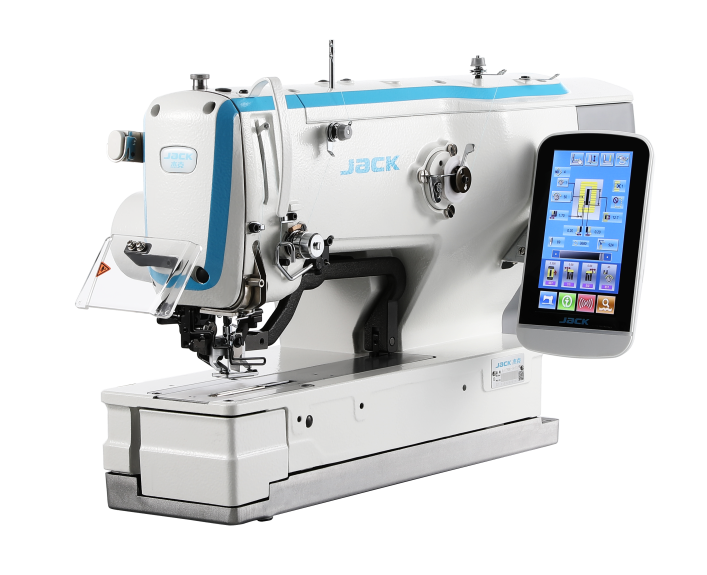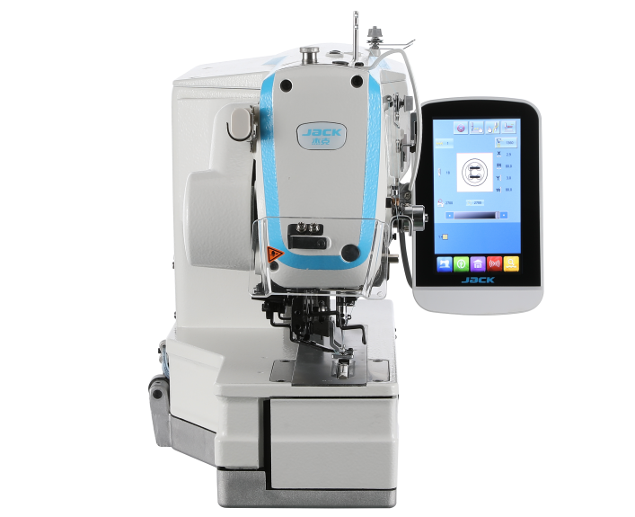 Dziurkarka bieliźniana elektroniczna JACK JK-T1790GS-2 to zaawansowana maszyna 2-nitkowa szyjąca ściegiem stębnowym. Obsługiwana jest przez czytelny panel z graficznym wyświetlaczem, który umożliwia wprowadzanie wzorów dziurek, numerów programów czy kształtów szwów.