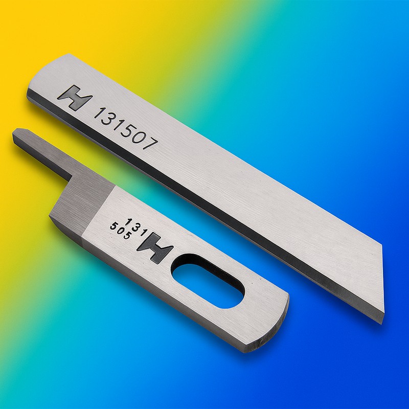 Noże o numerach katalogowych 13150503 (nóż górny) i 13150701 (nóż dolny) to oryginalne części przeznaczone do przemysłowych owerloków marki Juki.