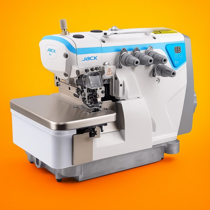 Owerlok 4-nitkowy JACK E4 wyposażony w silnik servo wbudowany bezpośrednio w głowicę (system Direct Drive). Dzięki temu rozwiązaniu pracuje wyjątkowo cicho, stabilnie i zużywa znacznie mniej energii elektrycznej niż starsze modele. Konstrukcja została zaprojektowana tak, aby silnik był lepiej chłodzony, co przekłada się na wyższą wydajność oraz dłuższą żywotność urządzenia.