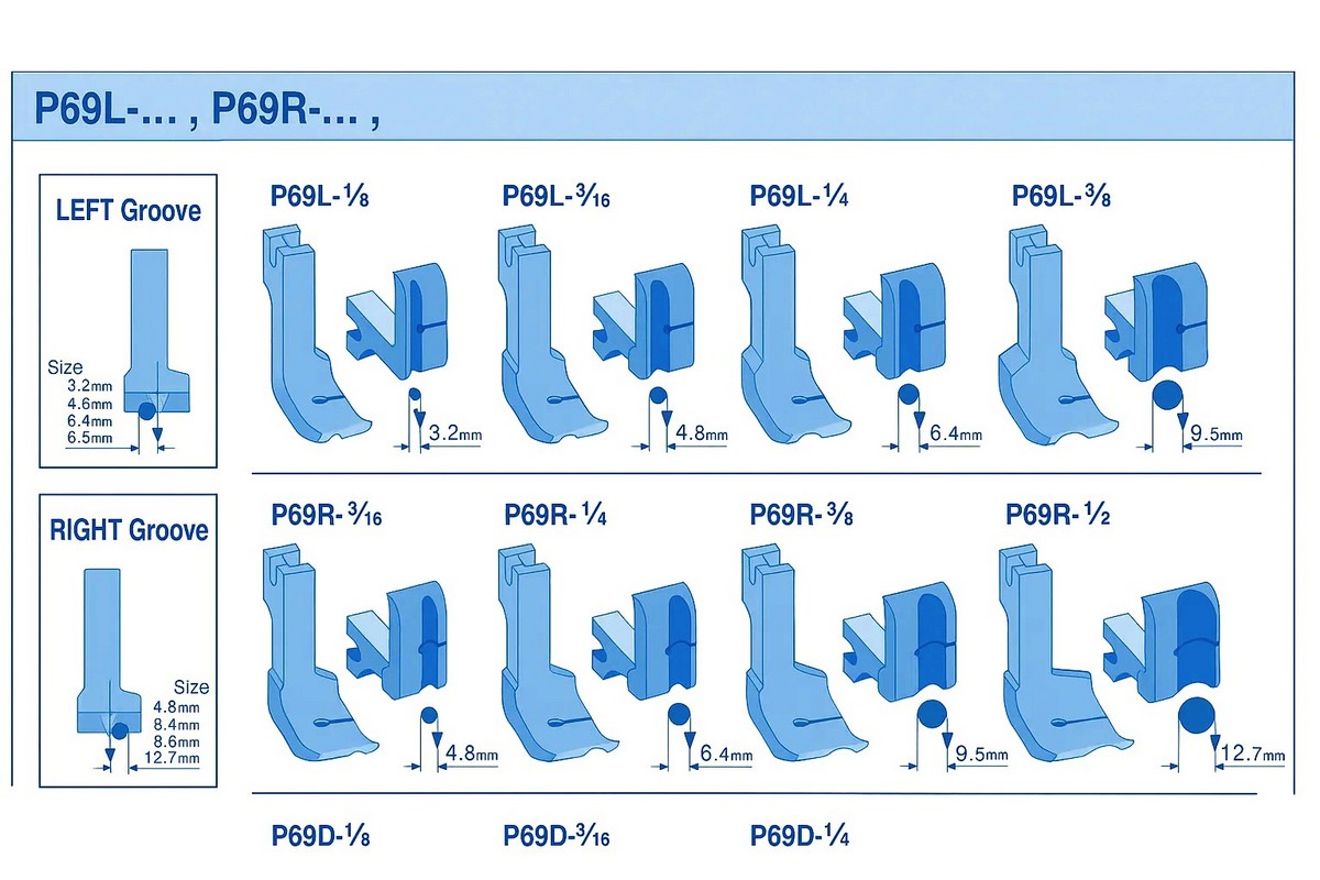 Stopki do maszyn szwalniczych serii P69 występują w kilku wariantach, które różnią się konstrukcją oraz przeznaczeniem. Najczęściej spotykane to modele P69L i P69LH.