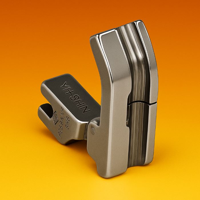 P69LH lewa lub P69LH prawa– stopka lewa z zawiasem (hinged), co oznacza, że jej płoza jest uchylna i może się odchylać. Dzięki temu stopka lepiej dopasowuje się do nierówności materiału, ułatwia szycie po łukach, w narożnikach oraz przy grubszym i wielowarstwowym materiale.