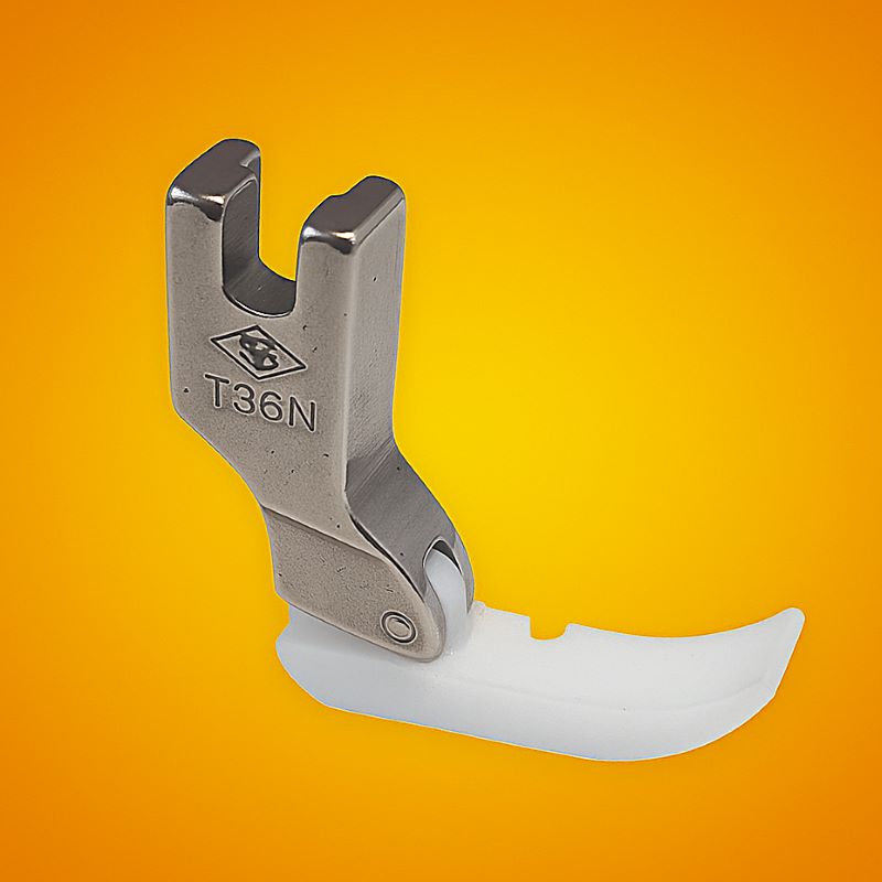 T-36LN — to wersja lewa (left) tej stopki — wąska stopka z teflonową podstawą, pozwalająca na bardzo bliskie prowadzenie igły od krawędzi, używana po lewej stronie zamka lub przewodu. Cutex Sewing